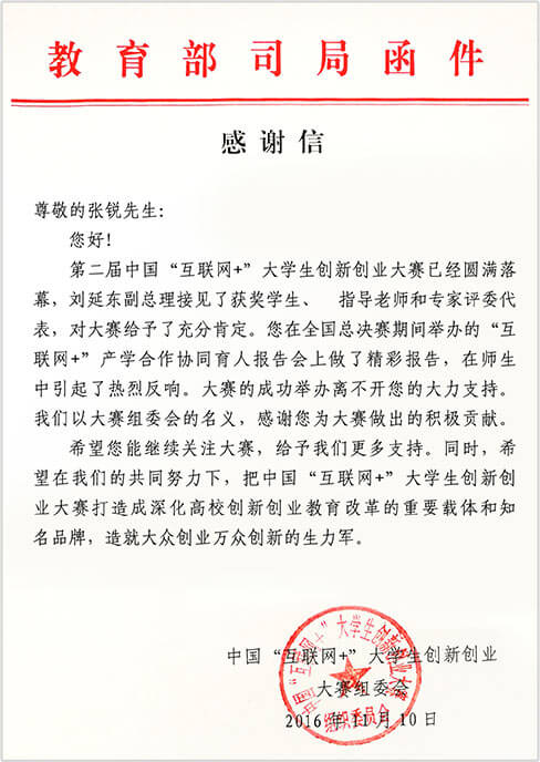 人人体育董事长张锐受聘国家级大学生创新创业训练计划专家组副组长。